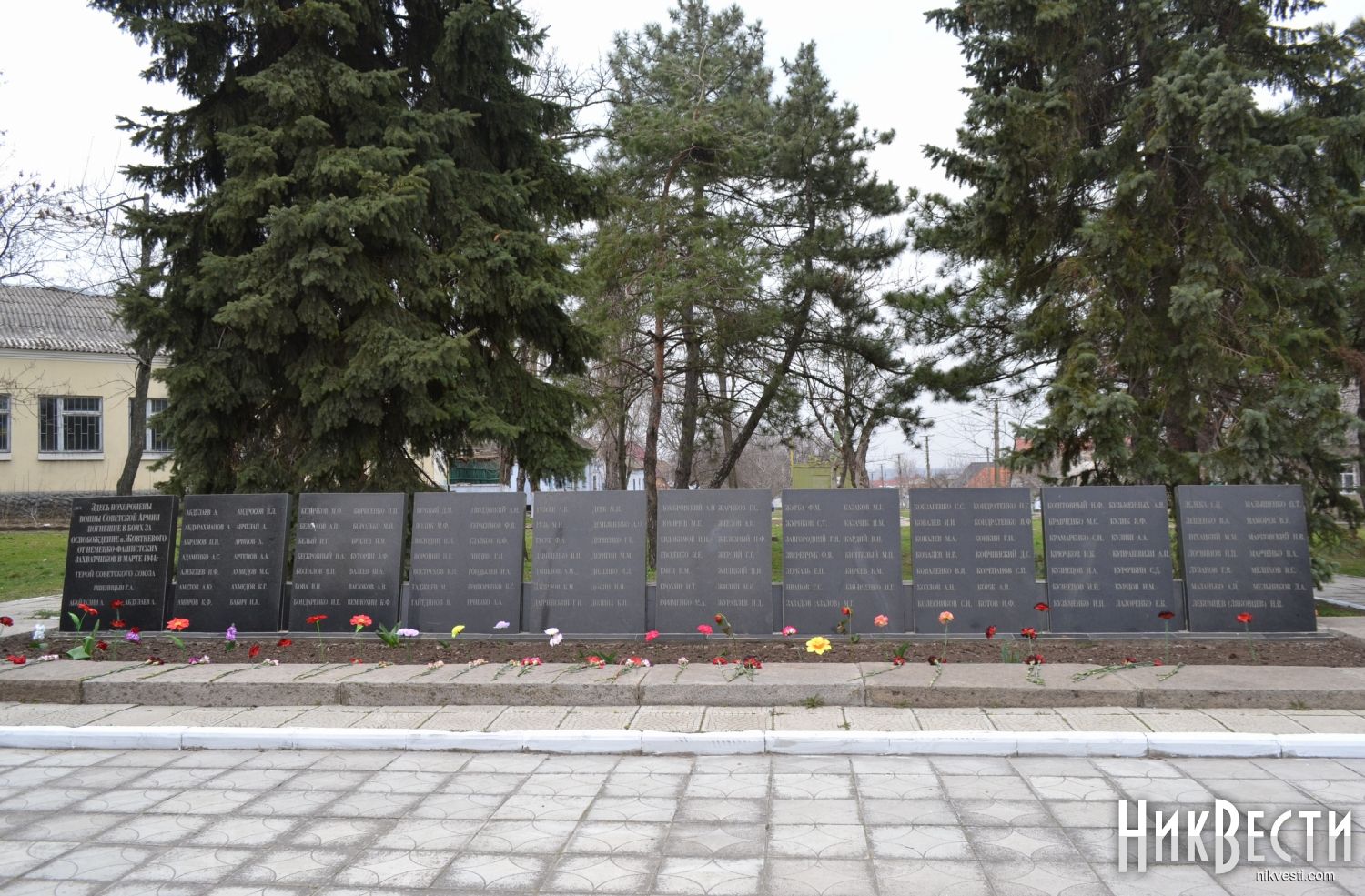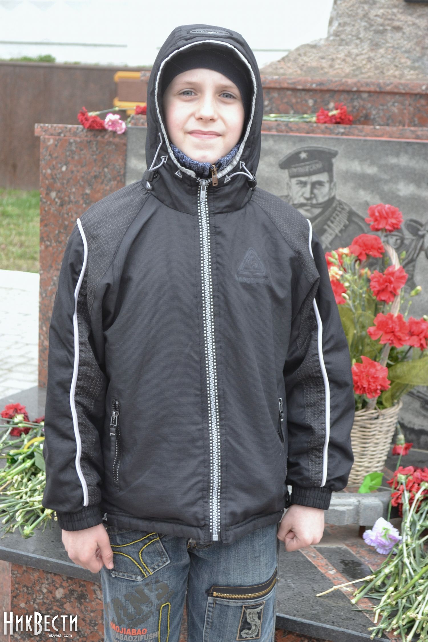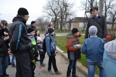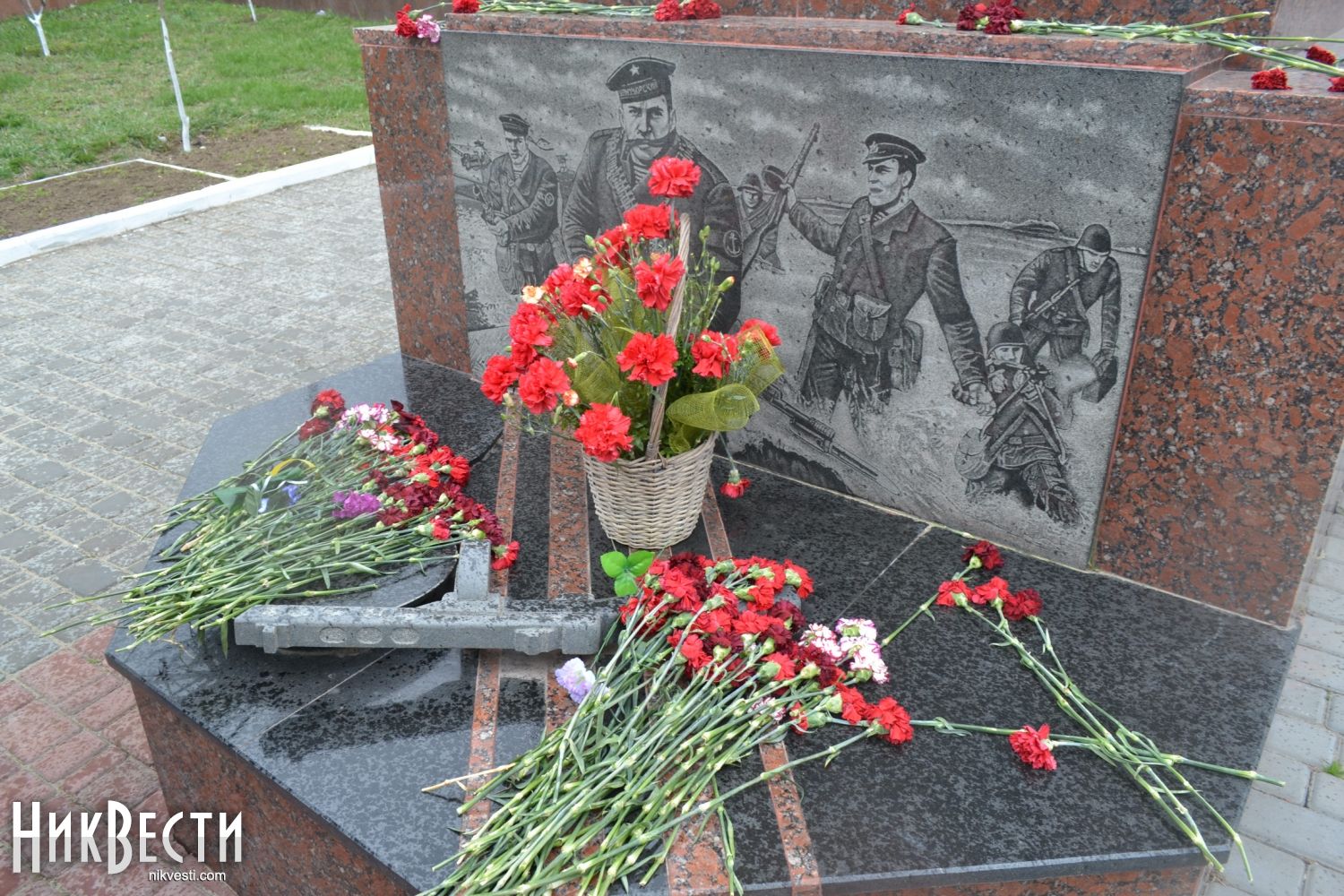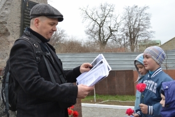 Находясь у мемориала, Юрий Решетник рассказал ребятам историю о том, как некая бабушка регулярно приносит цветы к братской могиле. Краеведу удалось выяснить, что во время операции по освобождению Николаева один из десантников заслонил тогда еще десятилетнюю девочку своим телом от вражеских пуль. Имя героя пока выяснить не удалось, но точно известно, что это один из тех солдат, чье имя нанесено на мемориальные плиты.