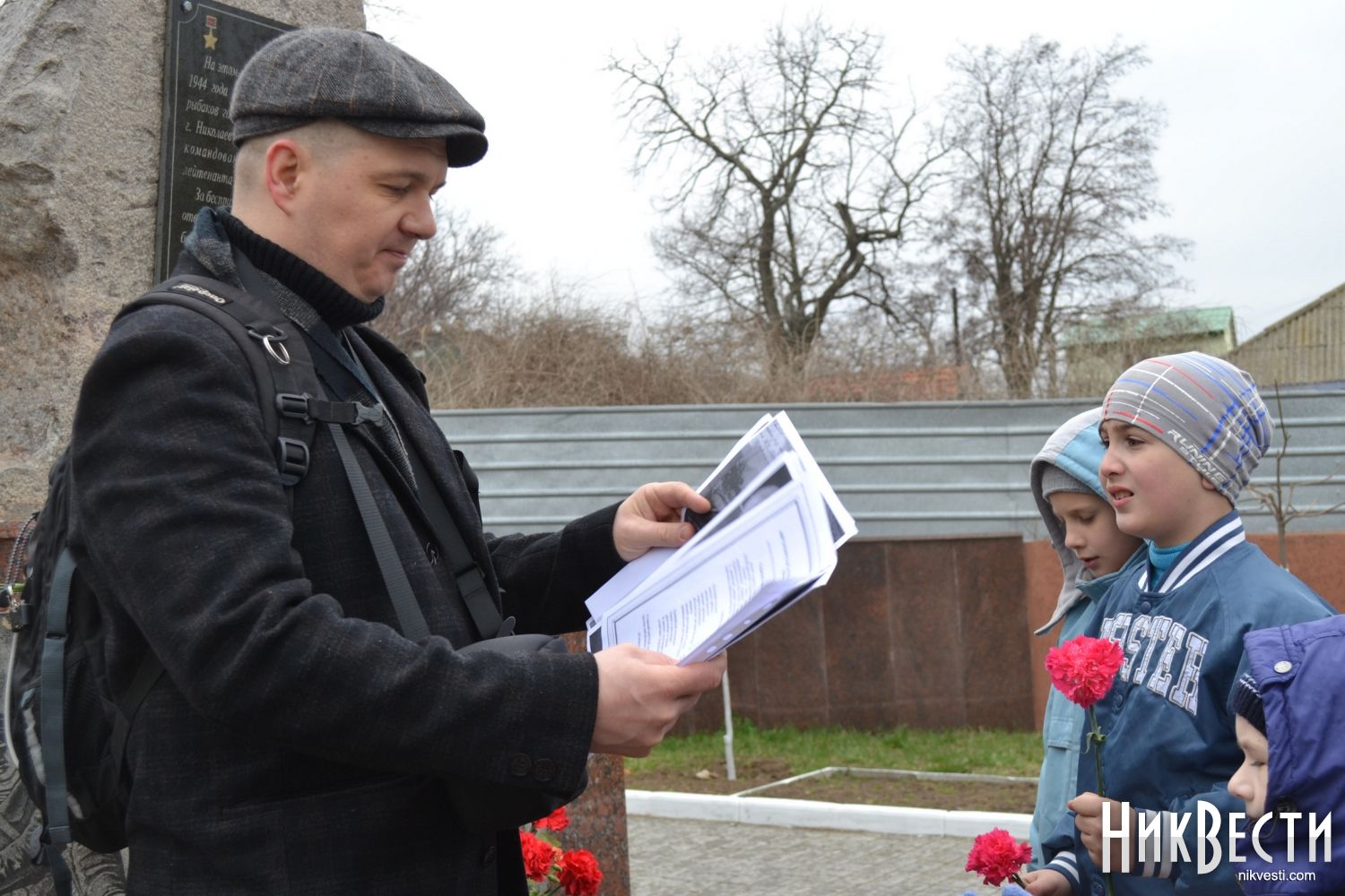 Точкой сбора желающих услышать о знаменитой операции стала площадь перед памятником и братской могилой воинов, освобождавших территорию современного Корабельного района, на пересечении улицы Ольшанцев и проспекта Октябрьского. Несмотря на штормовую погоду, на этот раз собралось около полутора десятка юных николаевцев и их родителей.