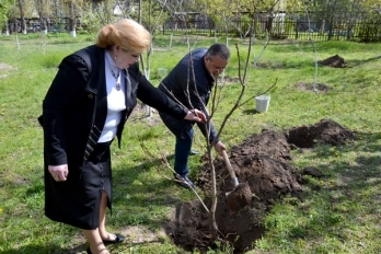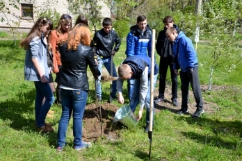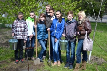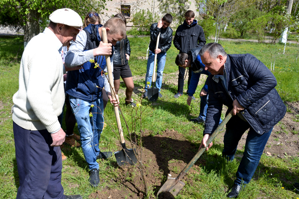 Работники «Ника-Теры» вместе с учениками школы имени Константина Ольшанского высадили деревья в преддверии Дня Победы