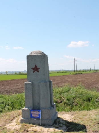 После войны жители поселка Коларовка решили установить на месте захоронения каменный обелиск в честь погибших. Впрочем, обелиск официально не считался местом захоронения, так как не было информации об именах погибших воинов, поэтому в соответствующие реестры внесен не был.