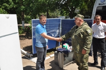 Пообещав помочь, депутаты сдержали свое слово: волонтеры благотворительного фонда Игоря Бриченко «Шагаем с заботой» привезли к месту расположения батальона патрульной службы милиции особого назначения «Николаев» УМВД Украины в Николаевской области холодильник, телевизор и спортивный инвентарь.