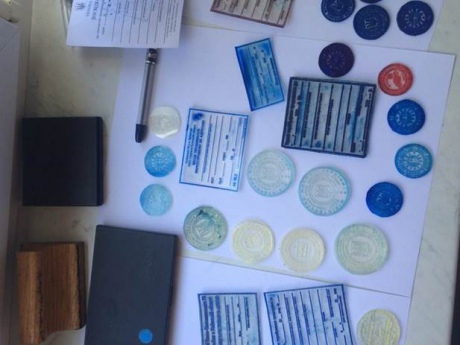 Во время обысков помещений участников аферы в Шевченковском, Голосеевском, Соломенском районах столицы и в Киевской области были изъяты клише 80-ти поддельных печатей нескольких государственных органов и вузов, а также уже готовые поддельные документы.