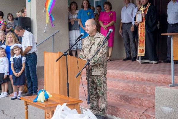 Особо бойцов впечатлил расписанный поздравлениями флаг Украины и подарок, которые передали ученики Снигиревской школы №3 на Первом звонке волонтеру Александру Ефремову.
