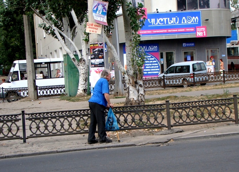 Посчитав, что догонять дедулю бессмысленно, мы продолжили наблюдать за пешеходами.