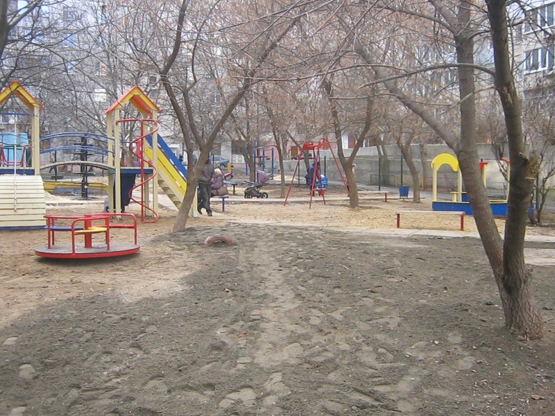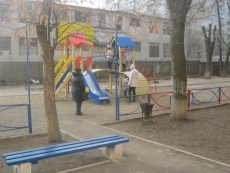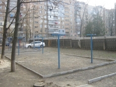 Установлены стойки для сушки белья, дополнительно установлен игровой комплекс, в который входят: горка, качели, баскетбольное кольцо, стенка-лестница и рукоход для малышей.