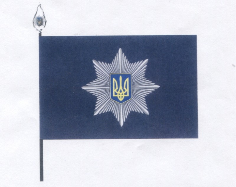 Флагом Национальной полиции Украины является прямоугольное полотнище синего цвета, в центре которого размещена эмблема Нацполиции. Кроме того, указом утвержден образец служебного флага территориального органа, научно-исследовательского учреждения Национальной полиции.