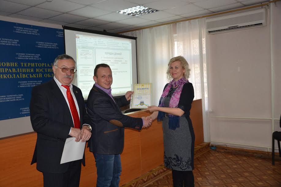 По случаю Дня адвокатуры Украины лучшим адвокатам были вручены грамоты областной государственной администрации, областного совета, городского совета, Регионального центра по предоставлению бесплатной вторичной правовой помощи в Николаевской области, Главного территориального управления юстиции в Николаевской области.