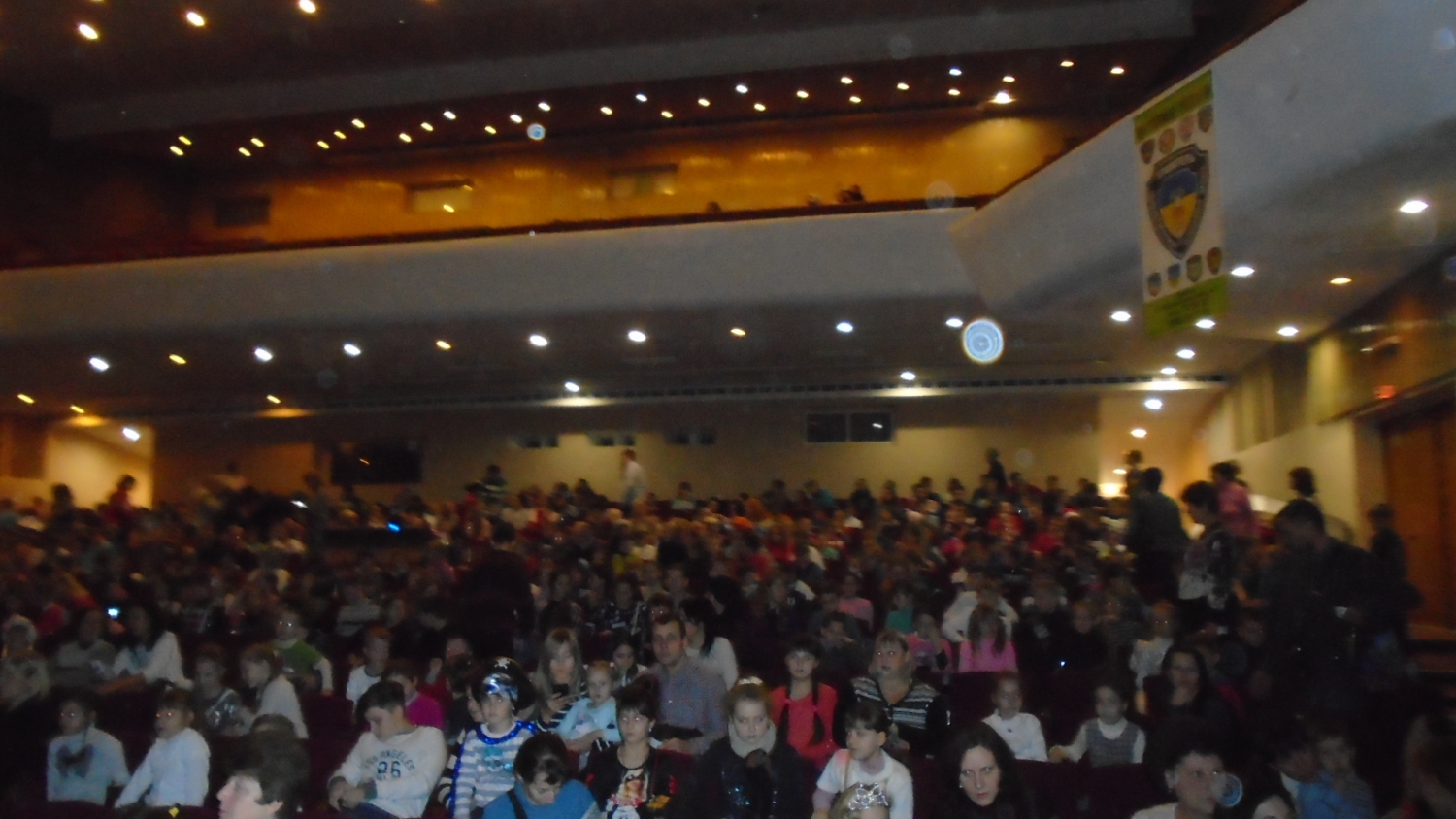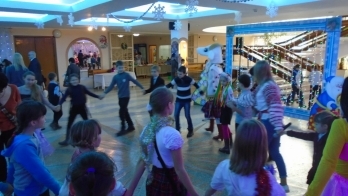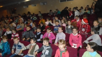 В областном Дворце культуры детей встретили герои любимых мультфильмов: Маша и Медведь, Смешарики, а также главные виновники новогоднего празднества – Дед Мороз со своей внучкой Снегурочкой и Снеговик. После веселых конкурсов и танцев ребят ожидало яркое новогоднее представление.