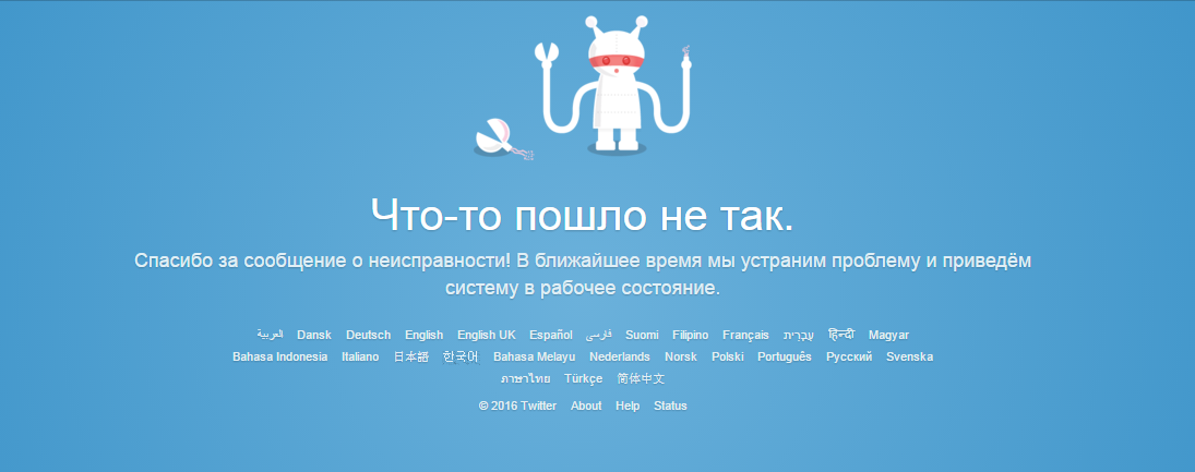 В работе сервиса микроблогов Twitter по всему миру произошел сбой. При попытке зайти на страницу появляется информационное сообщение о неисправности.