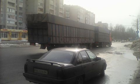 Сегодня в 11 часов дня в Николаеве на проспекте Героев Сталинграда общественники сфотографировали автопоезд ФОП Шевченко, государственный номер ВА7979ВС и прицеп ВА5980ХТ. Утверждается, что летом такой автопоезд, приехав на Нибулон, повредил им весы, рассчитанные на 100 тонн, тогда он перевозил 105т груза и имел общую массу 135 тонн.