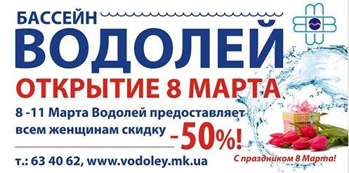 Он отметил, что по случаю Международного женского дня все посетительницы бассейна получат скидку на входной билет 50%.