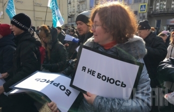 Кроме того, у участников акции в руках можно увидеть плакаты в черной рамке с надписями: "Борись", "Я не боюсь" и другие.