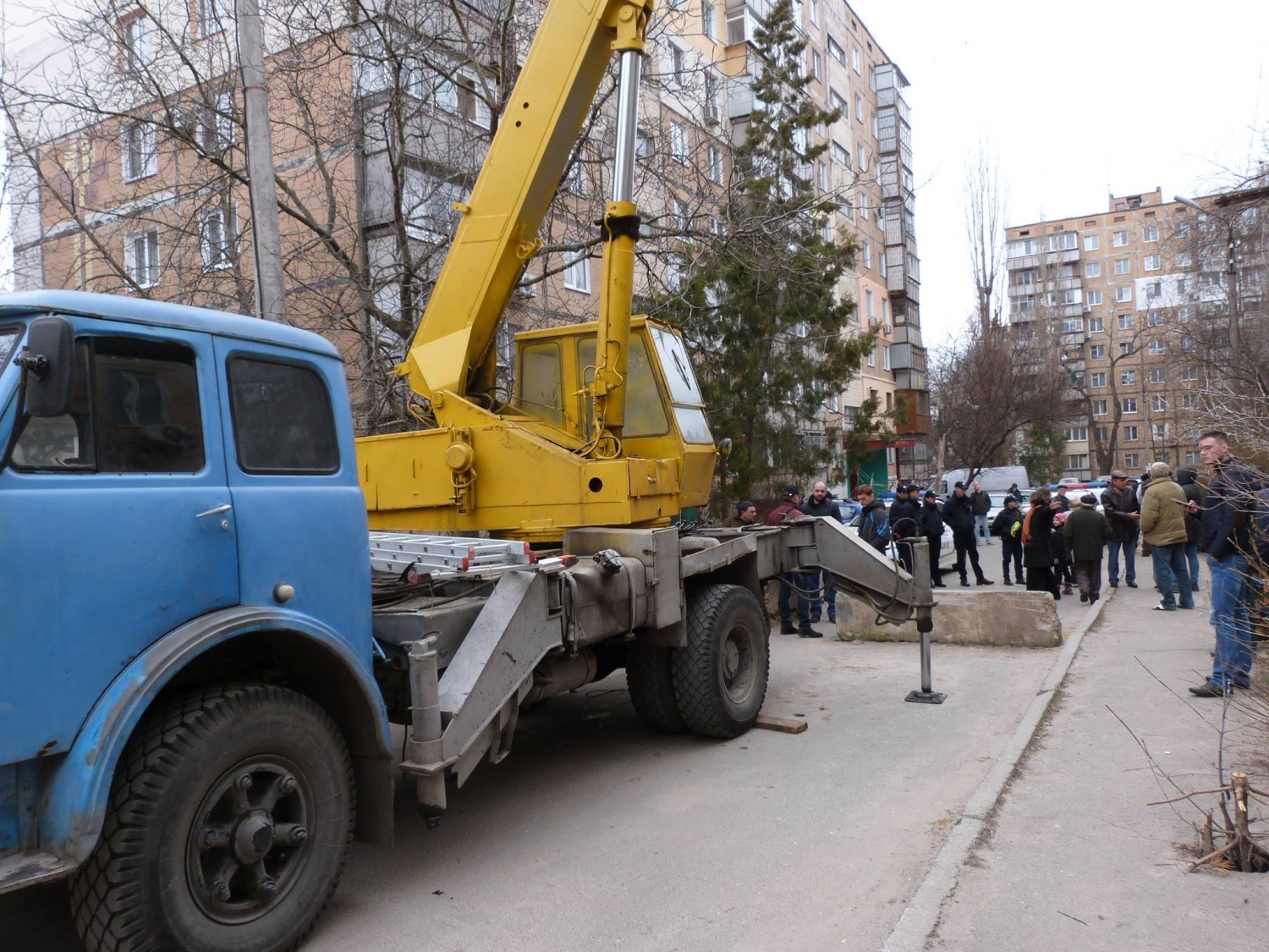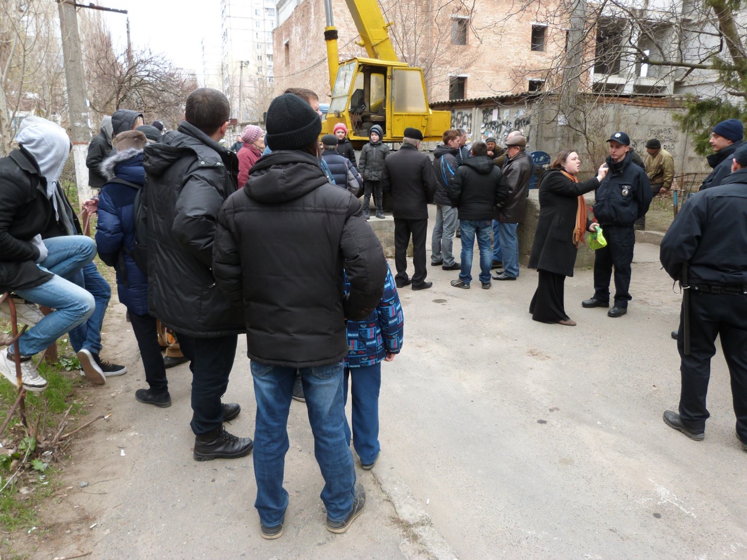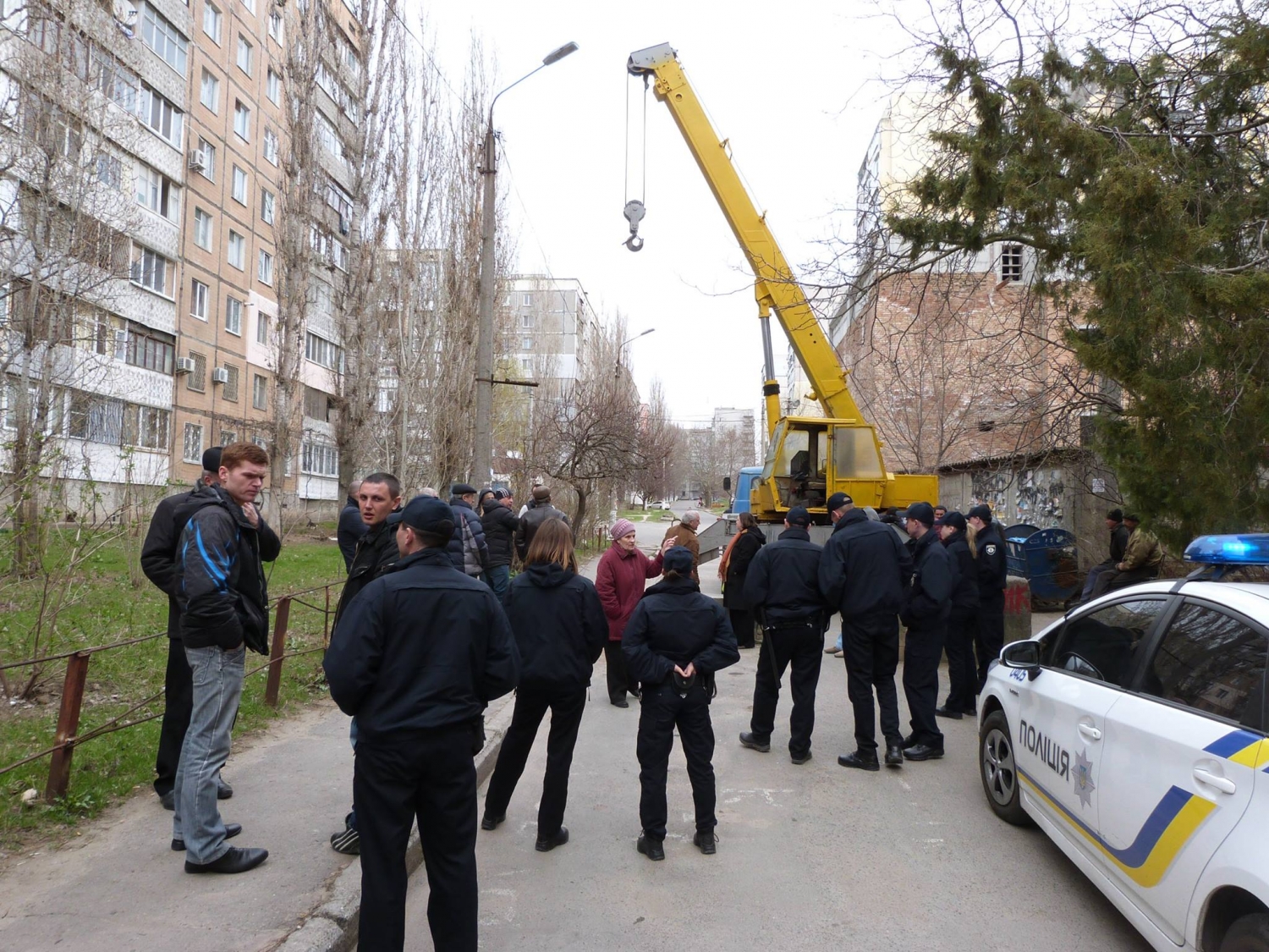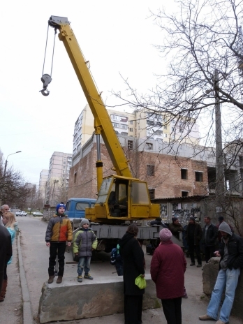 В Николаеве во дворе дома по проспекту Центральному, 162 возник конфликт между жильцами дома и коммунальными работниками, которые прибыли по распоряжению Администрации Центрального района, чтобы убрать с внутридворового проезда бетонные плиты.