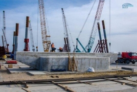 — Высота этой опоры небольшая – 3 метра. Вместе с пролетным строением она поднимет мост над сушей примерно на 7 метров. По мере продвижения к акватории высота опор будет расти. Дорога плавно поднимется и достигнет максимальной отметки над судоходным каналом. Там высота над зеркалом воды составит уже 35 метров, - рассказал главный инженер строительного участка Алексей Емченко.