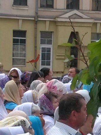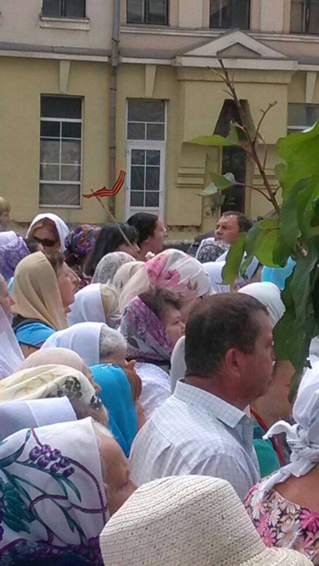 В Твиттере сообщают, что кроме церковных символов участники шествия имеют сепаратистское символику, в частности, в толпе можно увидеть георгиевские ленты. Также среди участников мероприятия есть люди со значками с изображением Николая II.