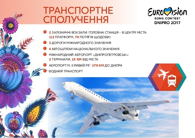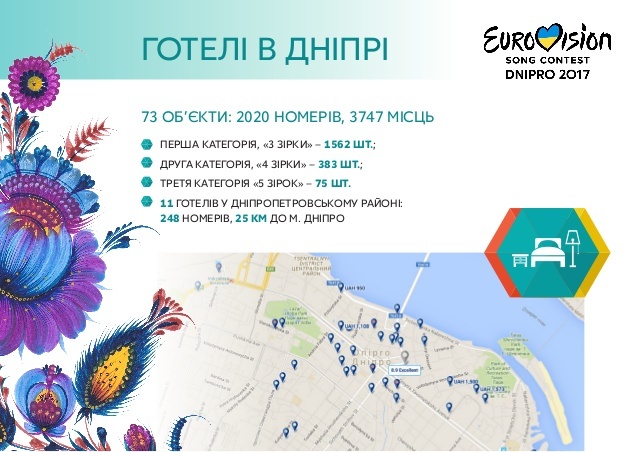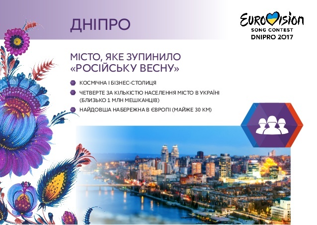 Провести конкурс днепряне предлагают на «Днепр-Арене», которая вмещает более 9,5 тысяч зрителей. Также заявляют спортивный комплекс «Метеор». Днепр готов инвестировать полмиллиарда гривен в подготовку города к "Евровидению – 2017».