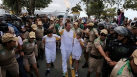 Напомним, Олимпийский огонь прибыл в столицу Бразилии из Греции в начале мая. С этого момента 12 тысяч факелоносцев пронесли Олимпийский огонь через более чем 300 городов страны.