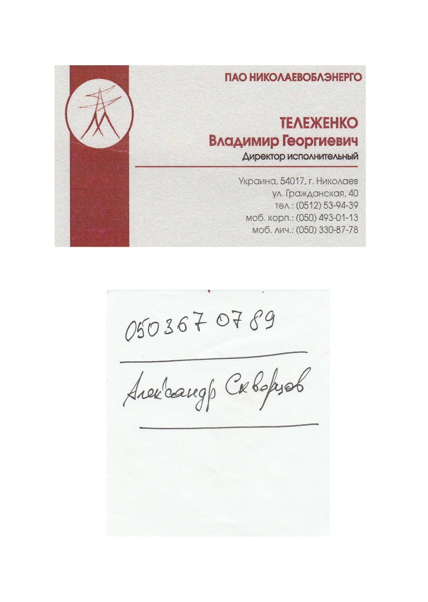 – После этого нас заводят в кабинет к исполнительному директору Тележенко В. Г., который вручает нам визитку и говорит: «парни, за благополучное решение вопроса вы должны заплатить наличными по 30 тысяч за одно село». Также он сообщил, что взятку необходимо передать через доверенное лицо, некоего Александра Скворцова, и написал его контакты на листике. Все эти доказательства в наличии, – добавил глава правления ОО «Перлина Бугу».