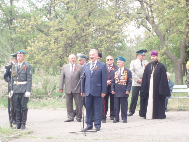 Старшина воздушно-десантных войск, ветеран ВОВ, Григорий Чернышев от имени совета ветеранов воздушно-десантных войск Николаевщины поздравил всех с великим праздником и со слезами на глазах закончил свое выступление чтением стихотворения.