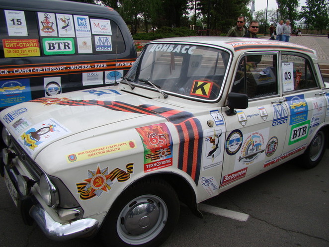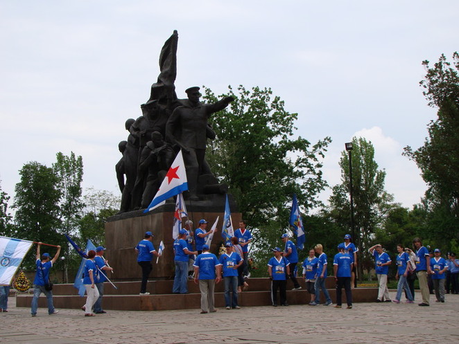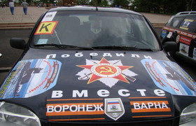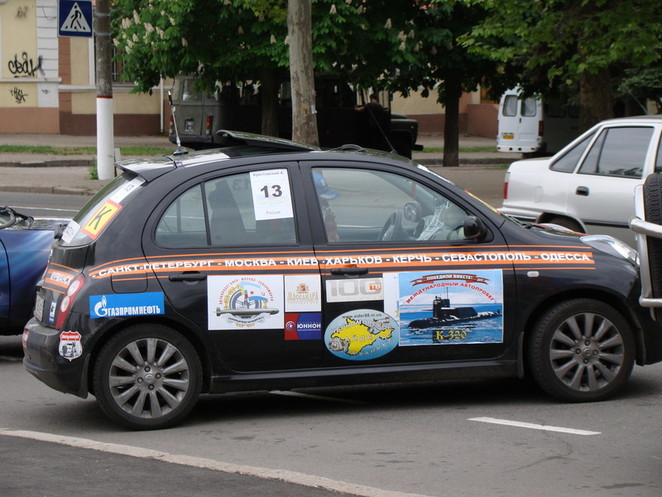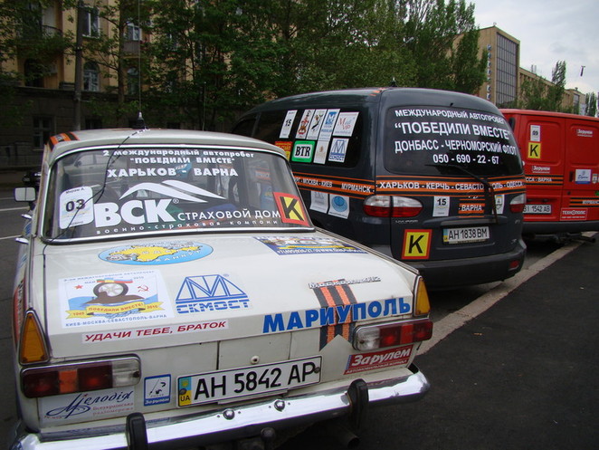 Автопробег по городам Украины и России в честь 65-й годовщины Победы совершают украинские и российские подводники-североморцы (и не только). Они вместе служили, и теперь вместе ездят по городам двух стран. Это уже второй их автопробег. Подводники 9 мая успели побывать в Севастополе, потом отправились в Херсон, затем в Одессу. А сегодня приехали в Николаев. Их машины обклеены различными надписями на фоне георгиевских ленточек. Почтив память героев-освободителей у мемориала на площади Ленина, сделав памятное фото, подводники сели в машины и двинулись дальше – почтить память солдат Великой Отечественной войны в следующем городе.