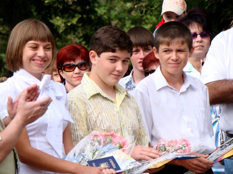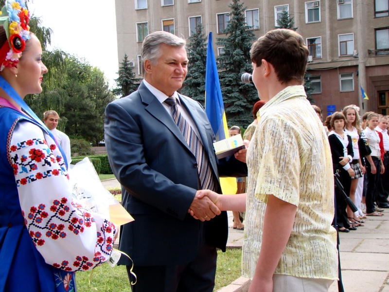 Троим школьникам, которым 24 августа исполнилось по 16 лет, Алексей Гаркуша лично вручил паспорта, а в конце торжества даже сфотографировался со школьниками.