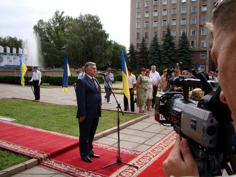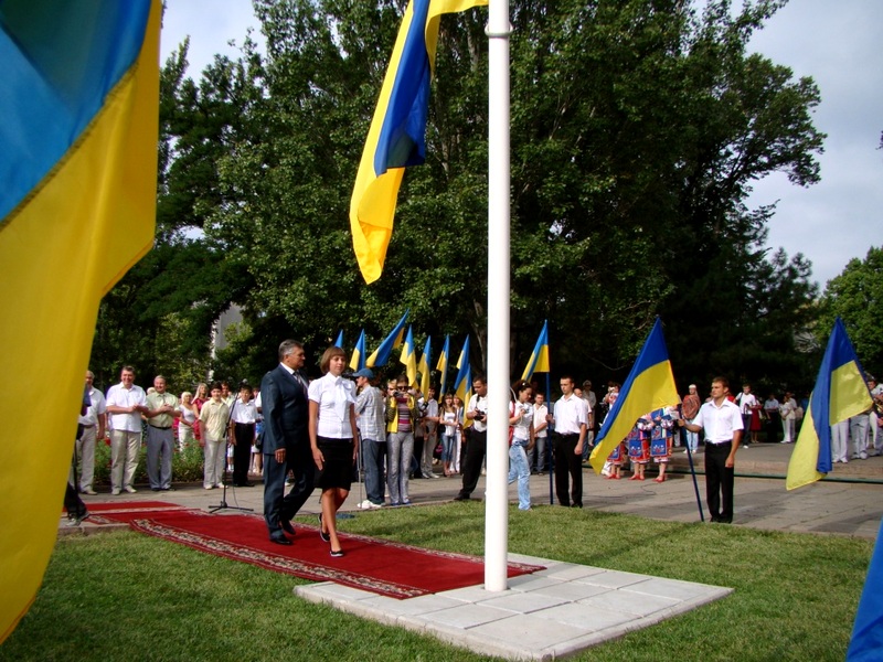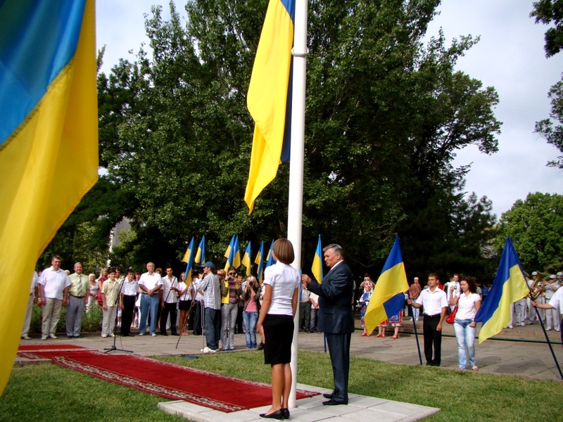 Голливуд отдыхает по сравнению с тем, как помпезно утром 23 августа губернатор Николаевской области Алексей Гаркуша поднял флаг Украины. Не смотря на воскресный, выходной день, ровно в 9.00 народ уже стоял под стенами облгосадминистрации, выстроившись в ряд вокруг красной дорожки, которая вела от входа в административное здание к флагу. Когда на горизонте появился Алексей Николаевич, школьники синхронно замахали флажками желто-голубого цвета. Некоторые даже аплодировали.