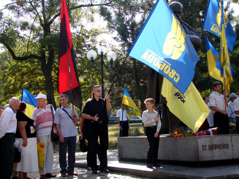 «Кому належить Україна? Українцям! Кому належить Миколаїв? Нам! – провозглашали активисты «Свободы». – Слава Україні! Героям слава! Слава нації! Смерть ворогам!»