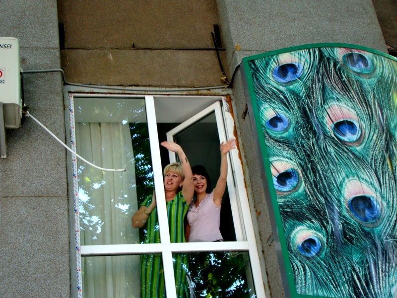 Интересной была реакция прохожих, которые видели парад. В окнах одного из домов показались женщины, которые приветствовали колонну радостными криками и махали руками.