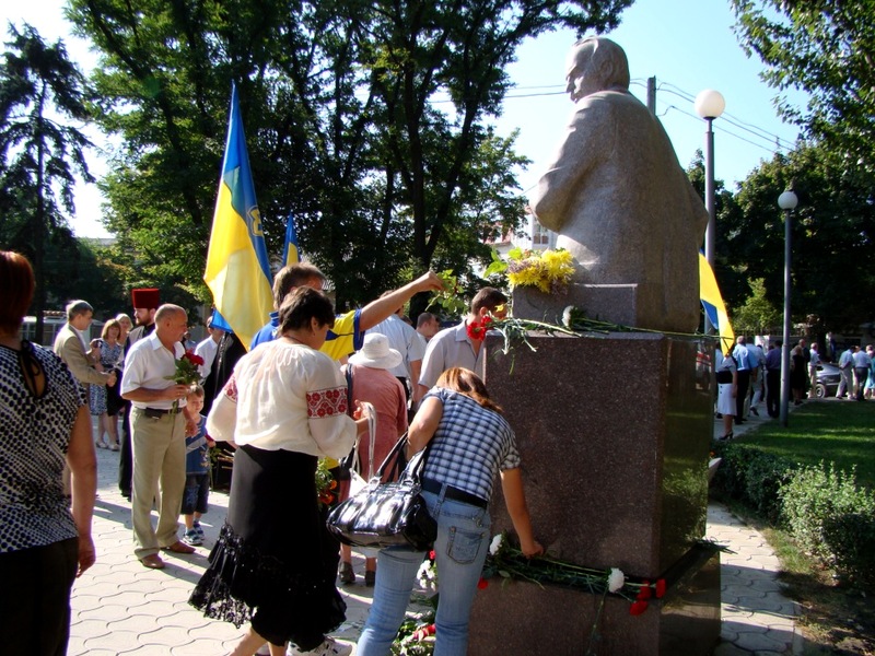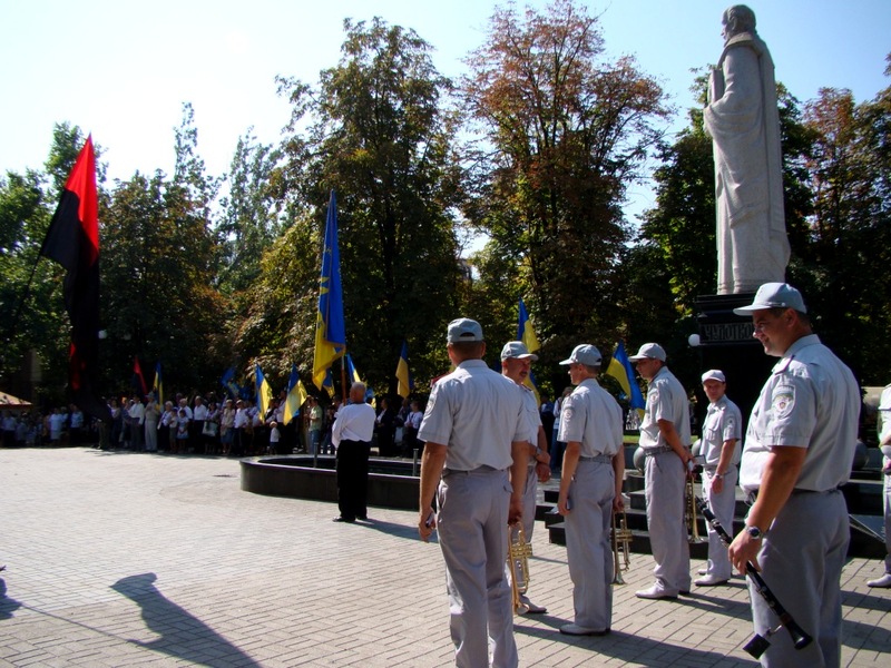 После возложения цветов к памятнику Вячеславу Черноволу колонна двинулась к памятнику Тарасу Шевченко. Именно там и состоялась официальная часть мероприятия.