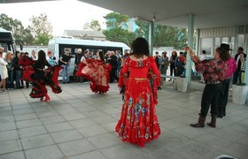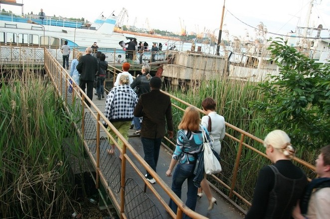 Ближе к вечеру участники фестиваля, а среди них были не только украинские представители ЛГБТ-сообщества, но и гости из ближнего и дальнего зарубежья, переместились из бизнес-центра на катер, обвешанный разноцветными шариками. На пирсе, в районе так называемой каботажки, участников фестиваля, приехавших туда двумя автобусами, ожидал цыганский ансамбль.