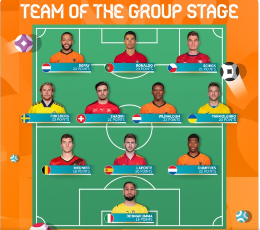 Компанию 31-летнему украинцу составили: Доннарумма (Италия), Дюмфрис (Нидерланды), Лапорт (Испания), Менье (Бельгия), Вейналдум (Нидерланды), Шакири (Швейцария), Форсберг (Швеция), Депай (Нидерланды), Шик (Чехия) и Криштиану Роналду (Португалия).