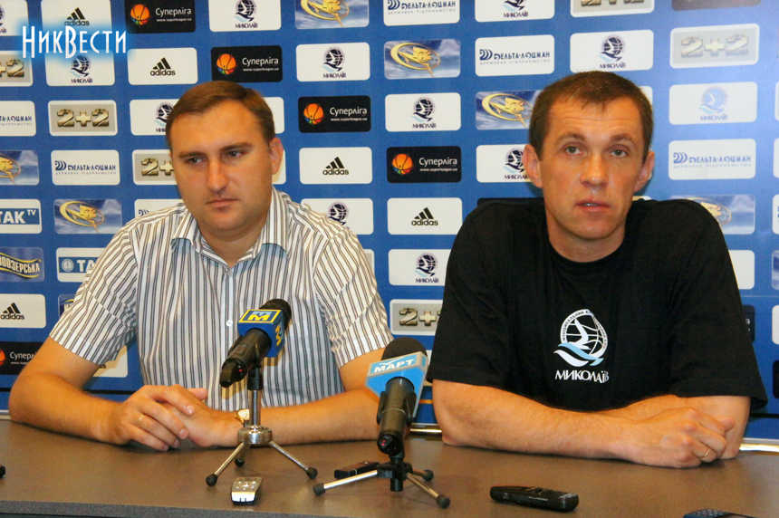 Николай Жук, президент МБК Николаев (слева), Агрис Гальвановскис, новый главный тренер МБК Николаев