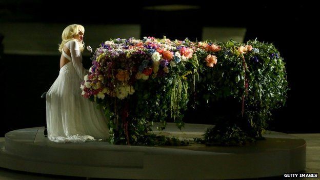 Сюрпризом церемонии стало появление Леди Гаги, исполнившей знаменитый хит Джона Леннона Imagine за роялем, утопающем в цветах.