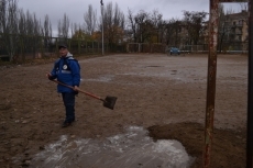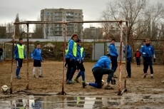 В связи с непогодой МФК «Николаев» перебрался на «песчанку», которая остается пока единственной и незаменимой площадкой для тренировок.