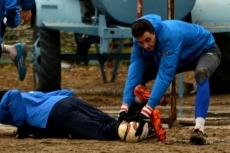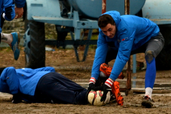 Несмотря на дождь и ветер, сегодняшняя тренировка прошла успешно. Сперва подопечные Руслана Забранского провели разминку, работу с преодолением препятствий, дабы увеличить физическую нагрузку, а затем разделились на три группы и сыграли мини-турнир.