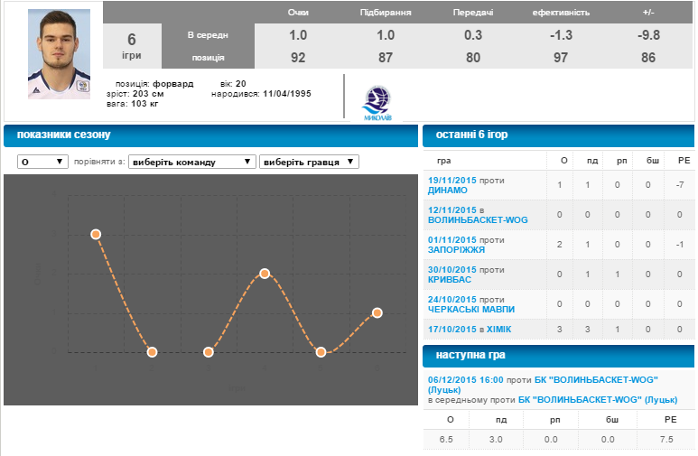 В составе МБК «Николаев» Богдан провел 6 матчей и не сумел проявить себя с лучшей стороны, набрав в общей сложности 6 очков и сделав 6 подборов.