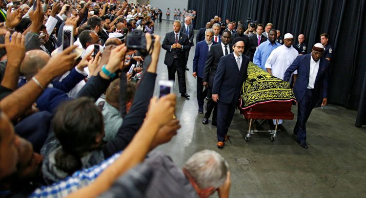 Как отмечает Associated Press, во время проезда катафалка на улицах Луисвилля выстроились около 100 тысяч человек. Они скандировали: «Али! Али!»