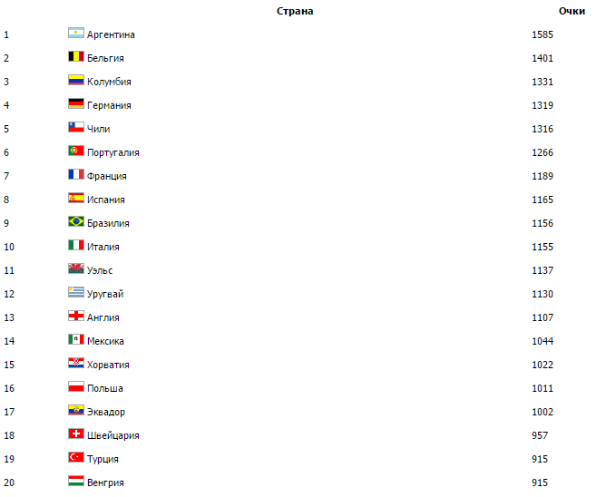 Сборная Исландии, соперник Украины в отборе на ЧМ-2018, поднялась на 12 строчек и разместилась на 22-м месте. Польша взобралась на 16-е место, а команда Уэльса заняла высокое 11-е место.