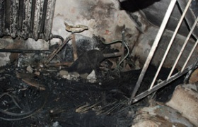 По прибытию к месту возгорания спасатели обнаружили, что открытым огнем горят автомобильные скаты под лестничной клеткой на первом этаже.