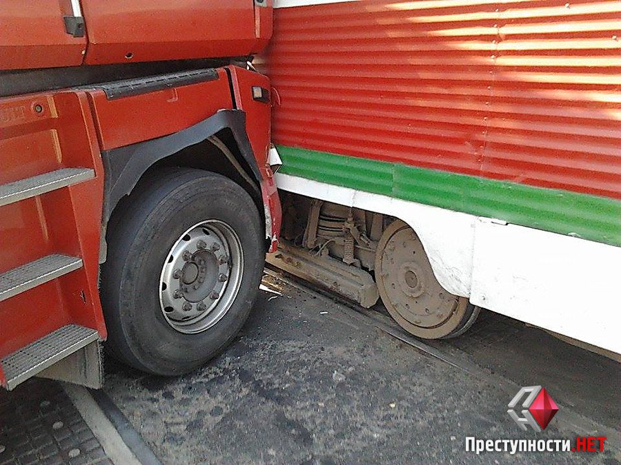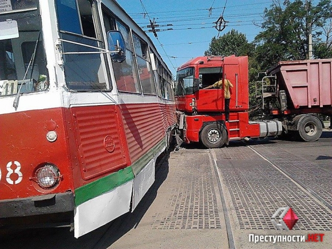 В понедельник, 18 июля, в Николаеве на пересечении улиц Пушкинская и Сенная произошло ДТП с участием трамвая и седельного тягача.