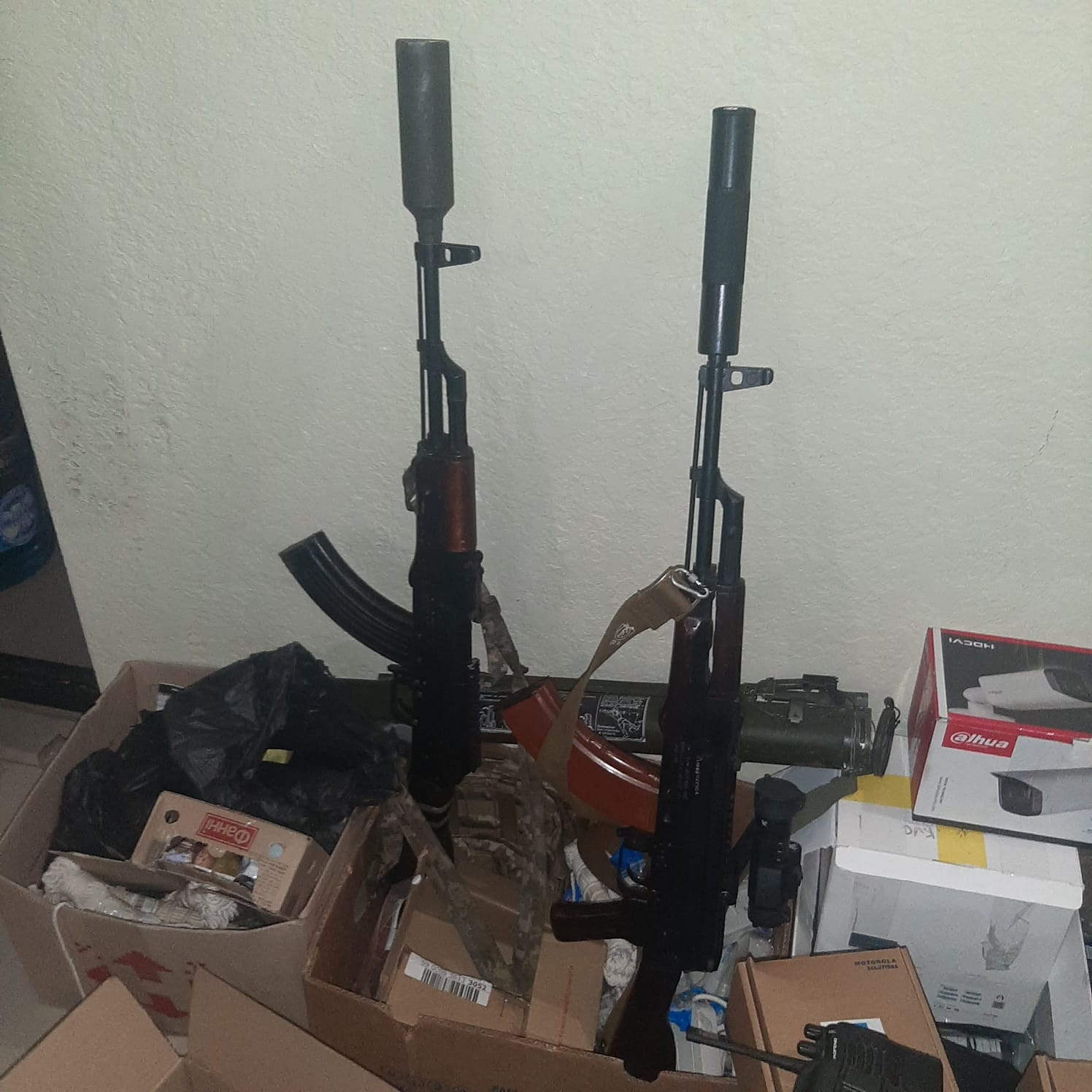 Чоловіки проникали до будинків, погрожували їх господарям зброєю та крали речі. В них знайшли 10 одиниць зброї, 8 гранат, 2 артилерійські снаряди, 7 одиниць холодної зброї і понад 3500 набоїв.