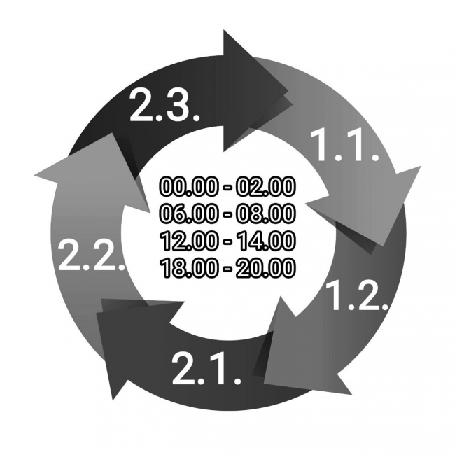 Йдемо далі. Припустимо, була необхідність і підчергу 2.1. довелося відключати. Наступного разу, коли настануть «червоні» години 1 та 2 черги (ми всі вже знаємо, що це 12.00 – 14.00), першими у черзі на відключення будуть підчерги 2.2. та 2.3.! Якщо їх буде недостатньо, «заходимо на друге коло» — задіюємо 1.1. І так далі.
