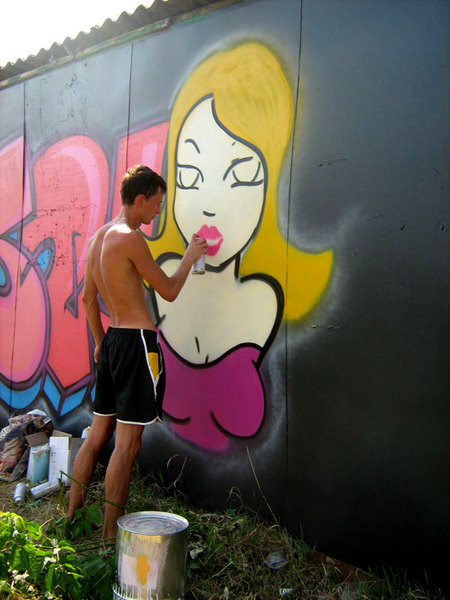 Девушек - профессиональных граффитчиков на фестивале не было - только любительницы. По словам участников, в Европе представительницы прекрасного пола уверенно орудуют баллончиком с краской, а вот в Украине такого пока нет.
