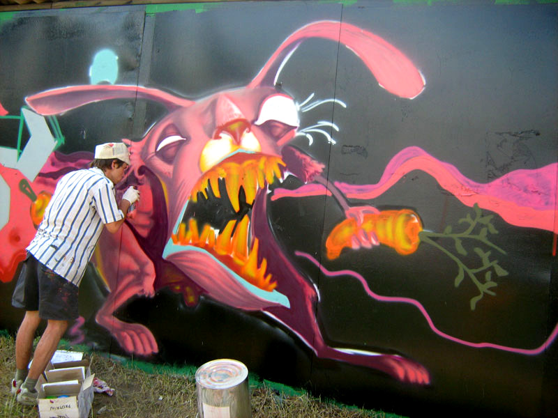 Райтеры трудились с десяти утра до семи вечера. Они наносили рисунки с помощью впервые разработанной в Восточной Европе специализированной аэрозольной краски для граффити и стрит-арта. Она имеет запах ванили и производится в Харькове.