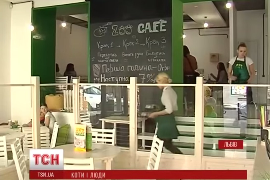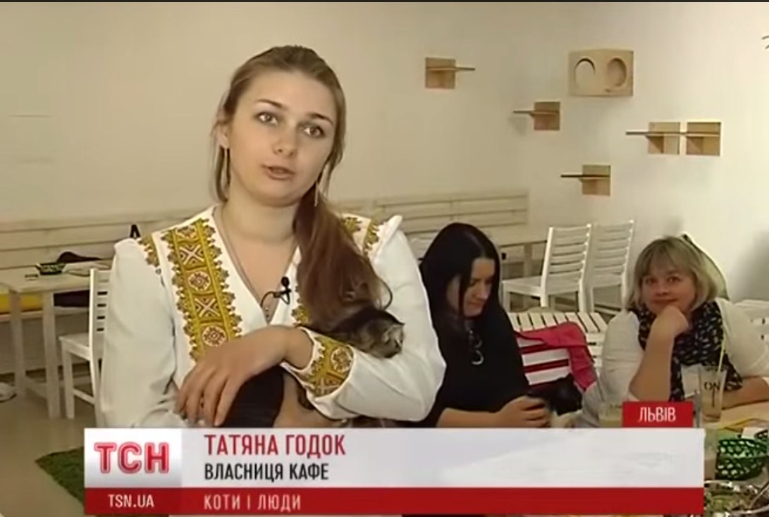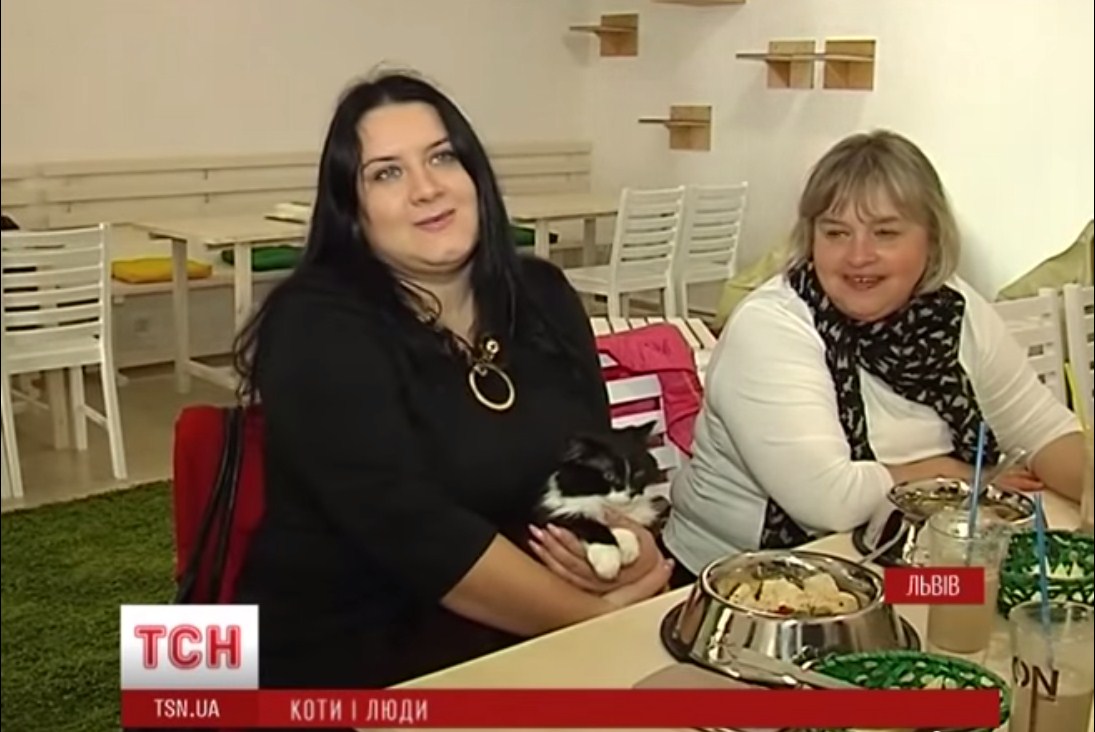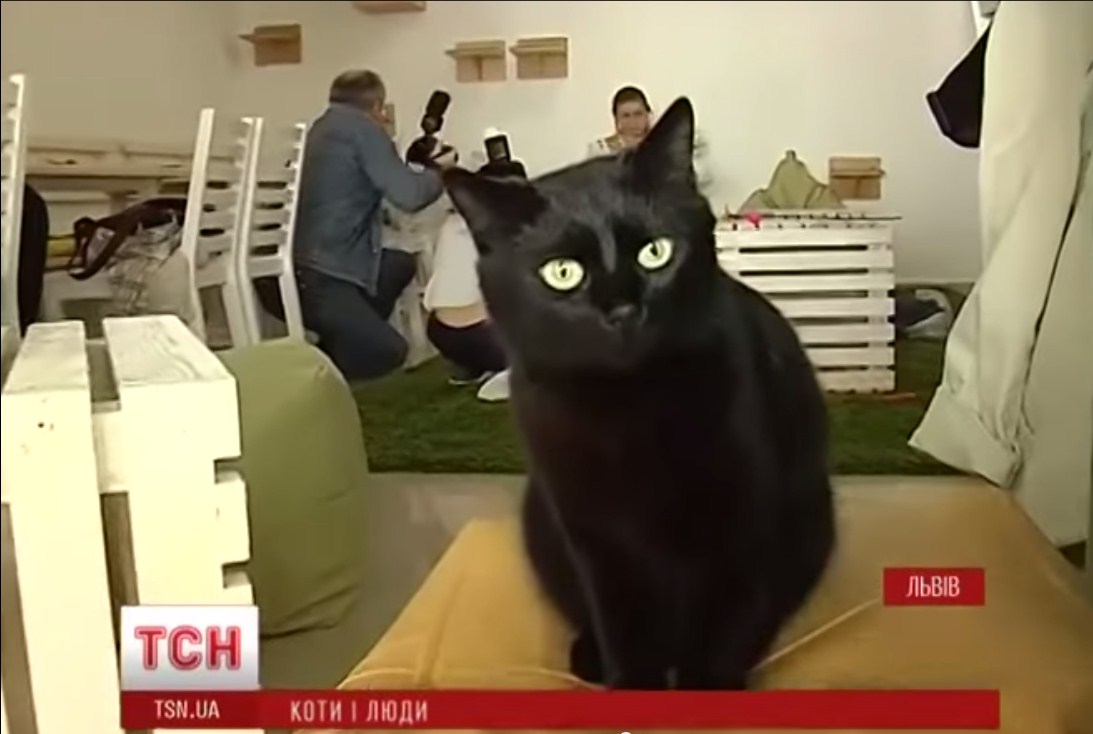 Кафе только открыли, а коты уже чувствуют себя как дома. Младшие неугомонно скачут по стенам и столам, взрослые чинно сидят, мурлычут и наблюдают за людьми. Хозяйка заведения говорит, что их не покупали, а брали из приютов, улицы или просто дарили люди. Переселенцы из Крыма признаются, что поначалу такое кафе хотели открыть дома, но побоялись, что там их идею не поймут. В более европейском Львове замысел восприняли на ура.