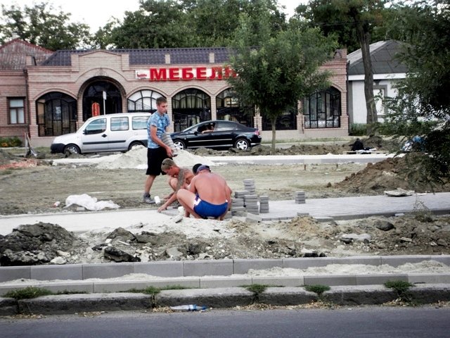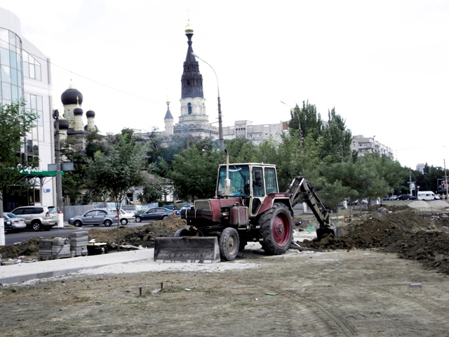 Но увиденное в сквере, уверяло в обратном – работы там идут полным ходом. Рабочие уже успели не только деревья пересадить, но и начали укладывать тротуарную плитку и строить фонтан.