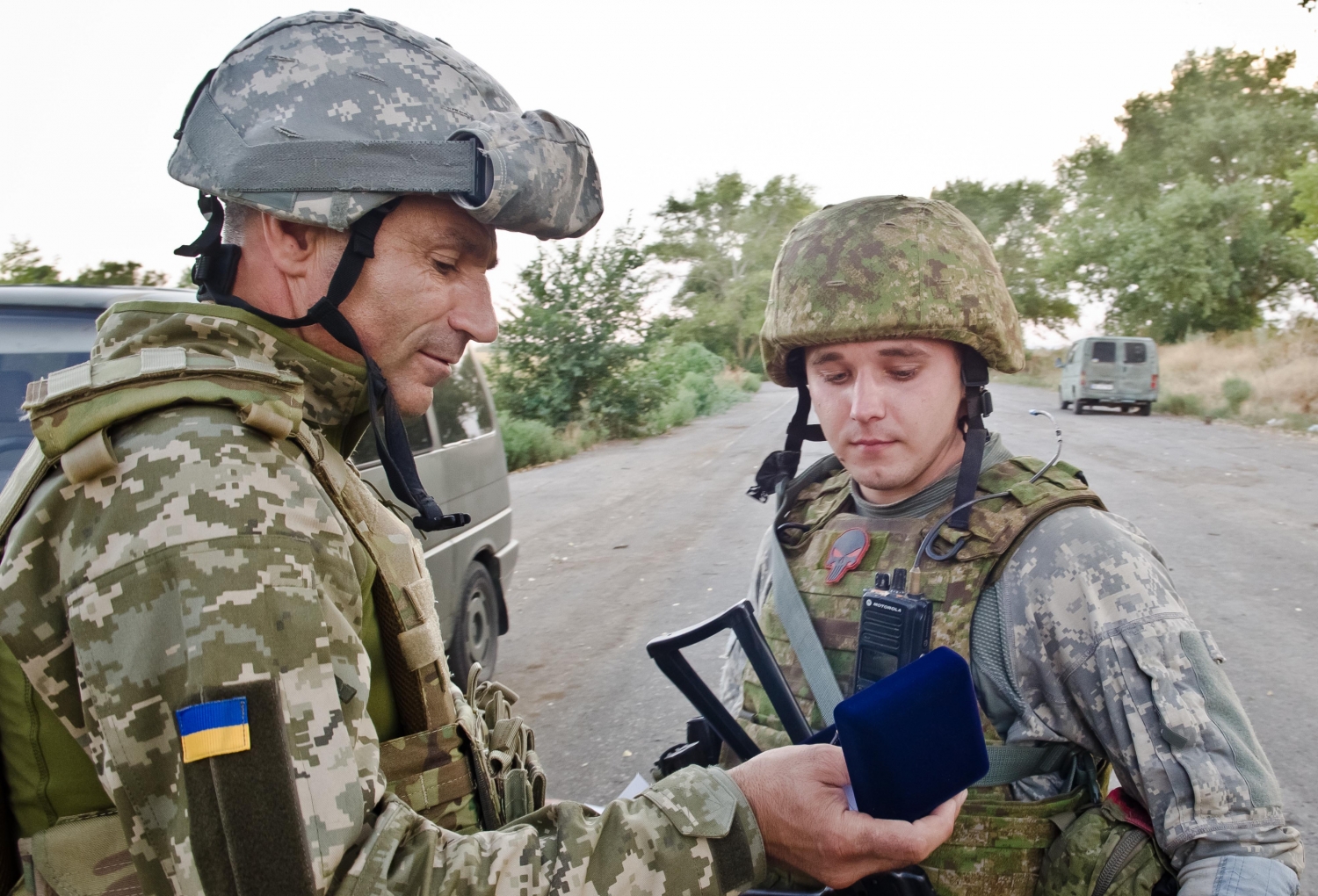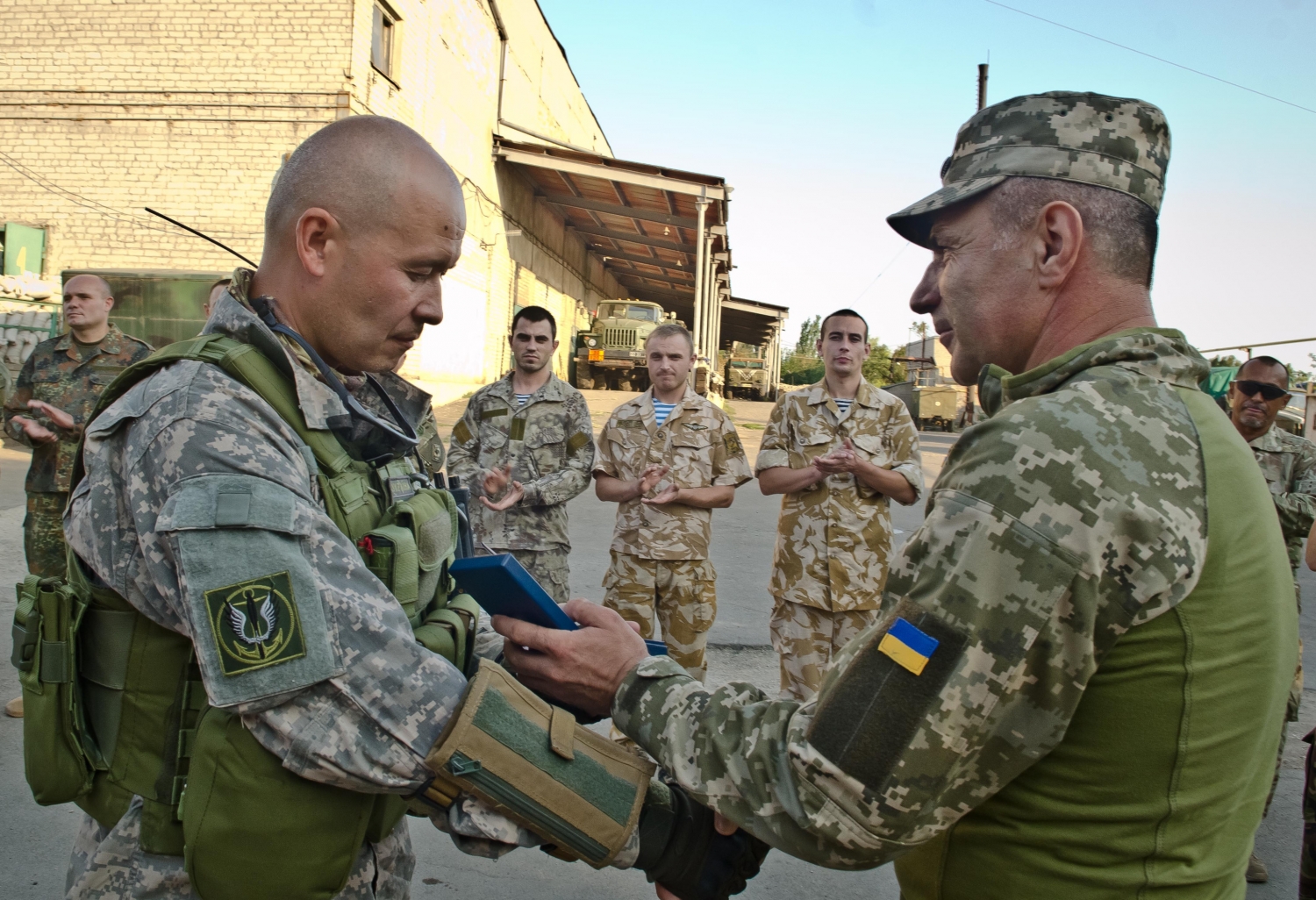 Командующий Военно-Морских Сил Вооруженных Сил Украины вице-адмирал Игорь Воронченко поздравил военнослужащих первого отдельного батальона морской пехоты с 25-й годовщиной Независимости Украины, прибыв в район проведения антитеррористической операции.