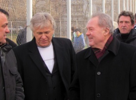 После этого мэр прибыл на стадион, чтобы поздравить своего однопартийца Юрия Антощенко с победой его футбольной команды в чемпионате области.