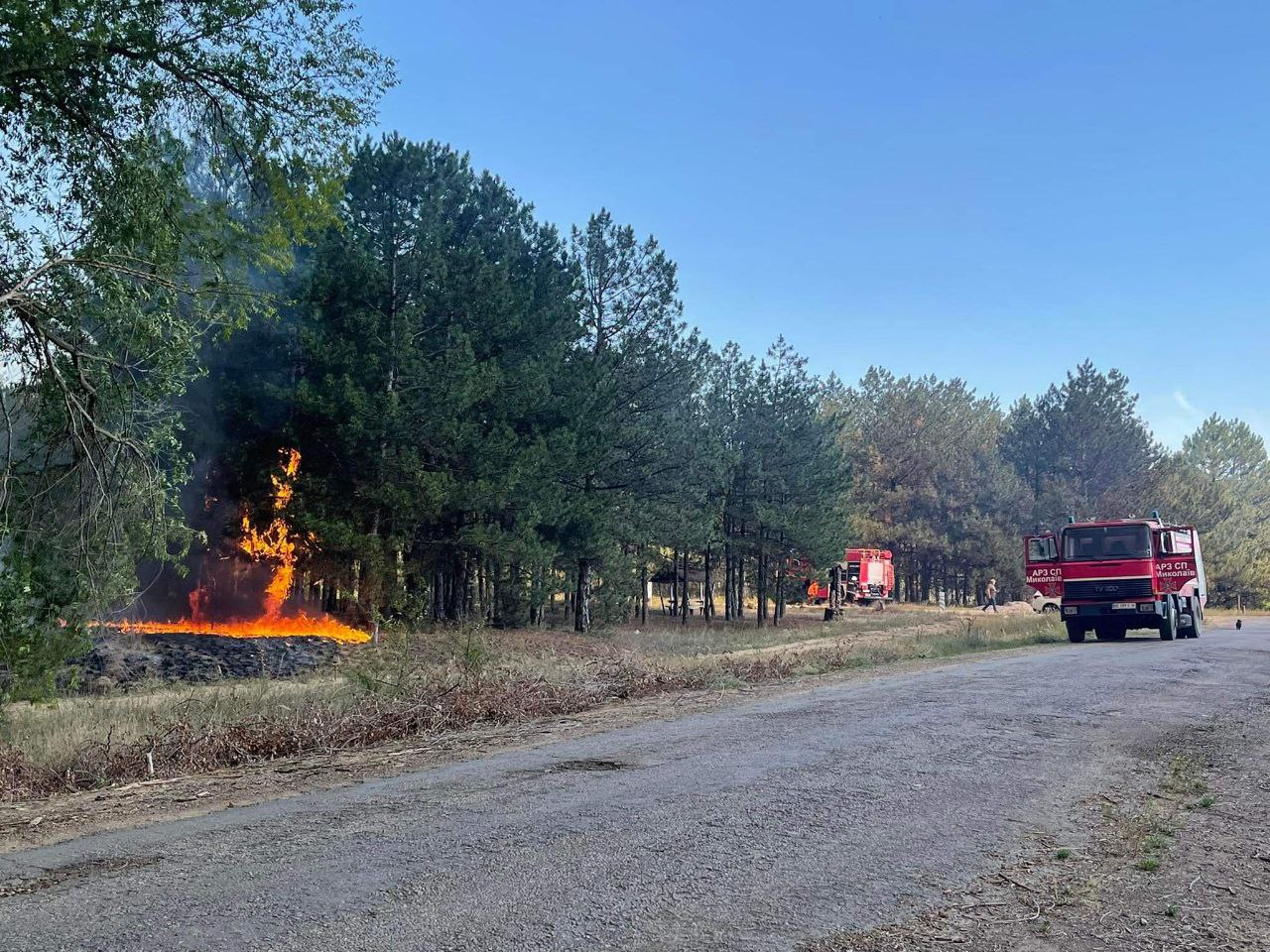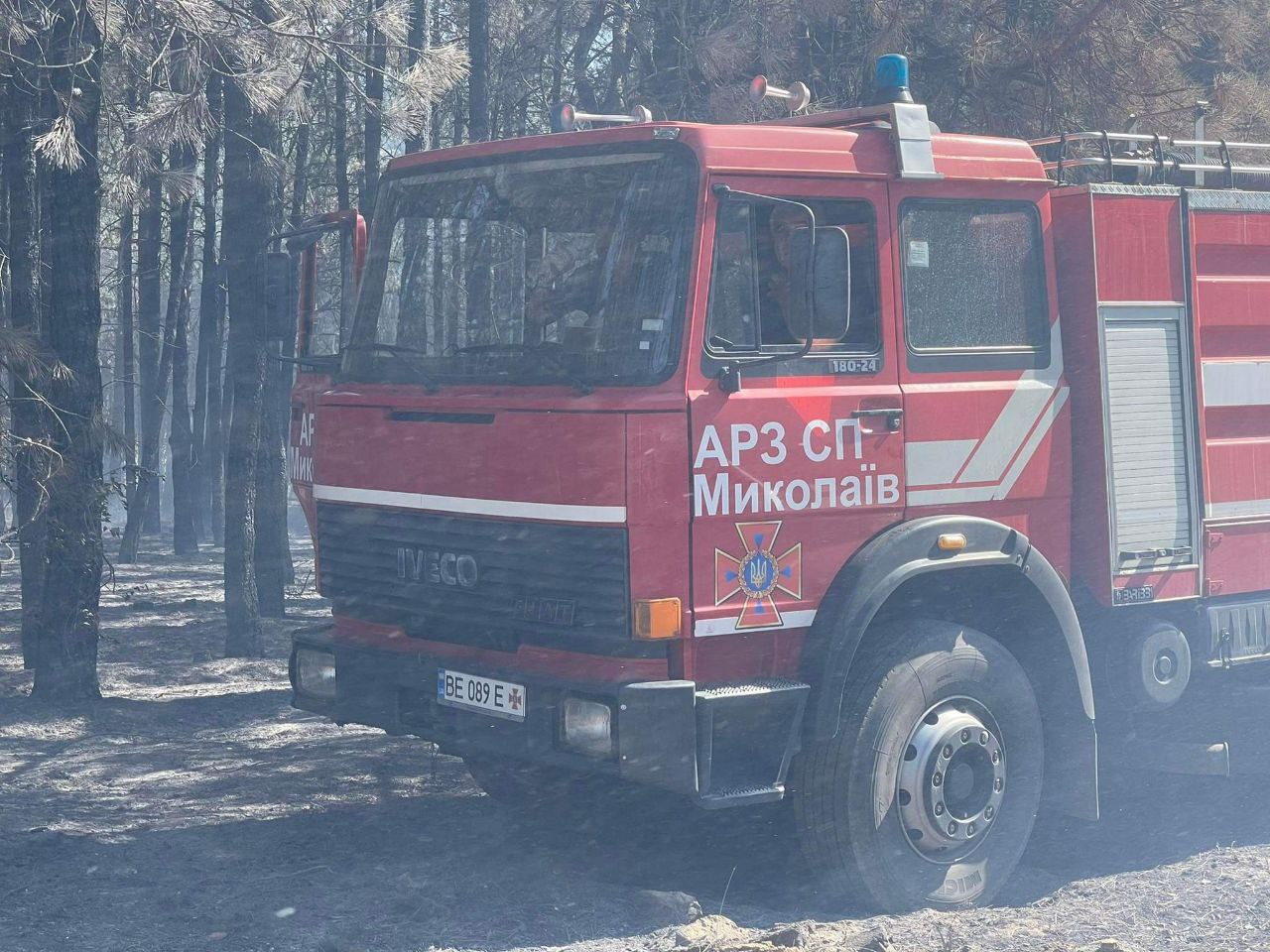 Також на місці працює 4 одиниці техніки ДП «Миколаївське лісове господарство» та лісники.