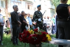 Церемония прощания проходила по адресу улица Чкалова, 205, где жил погибший воин.